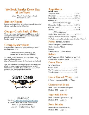Enjoy good eats & cold Drinks with friends @ The Creek!